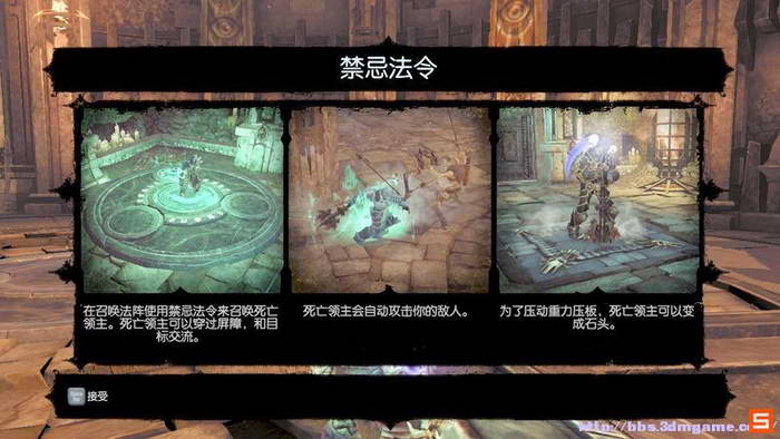 公正官不是非常难对付。玩家只需注意补血即可,打败他之后,你获得召唤死亡领主的能力。而死亡领主可以越过栅栏为你互动无法触及区域的机关