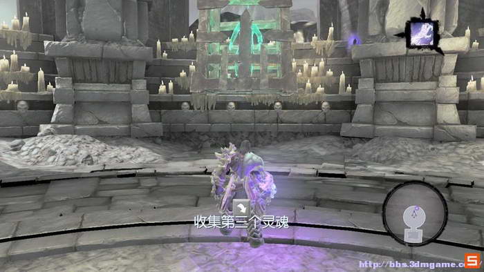 第一个灵魂的收集比较简单讲灯移动到灯塔照亮即可。注意使用死亡领主压制住机关开启通道,如下图所示