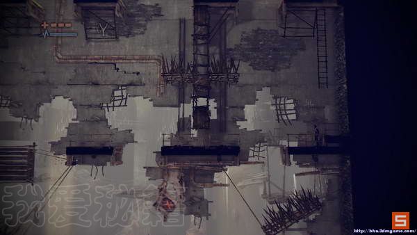 来到最高层,发现这里有爬不过去的铁丝网作为障碍。这里你需要发出声音,吸引周围的僵尸走到对面中间脆弱的木板,让他们压碎木板