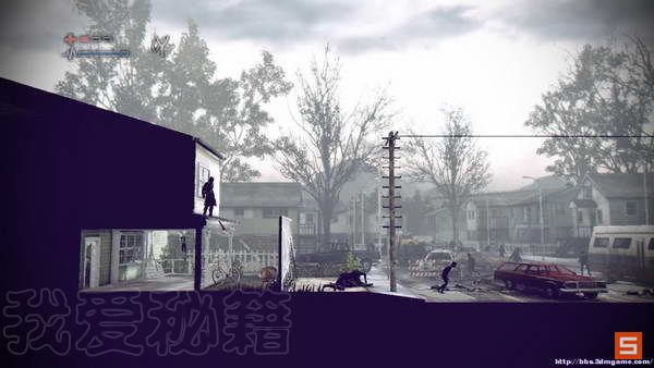 由于你只有一个可怜的弹弓当武器,所以全程以躲避为主。从高空爬行躲避下面的僵尸群体,中间可以在电线杆的楼梯上休息一会恢复耐力