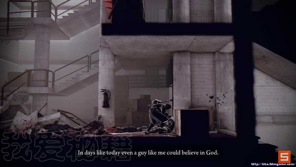 来到下一个车库。这里站在上层门前等待僵尸出现,爆头杀死两个;然后快速冲到上面;砸开铁门往下。之后铁落到下层,遇到僵尸群;一路冲过即可来到地面