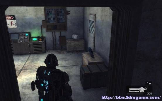 开门后来到这里会碰到红外机器人,激光枪几枪干掉,旁边有补充弹药的。