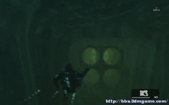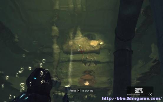水里出现了大爬行机器人,还有两条机器鱼,控制一条后用柱子当掩护打吧。在左边的柱地上有个51。打死机器人后,过关