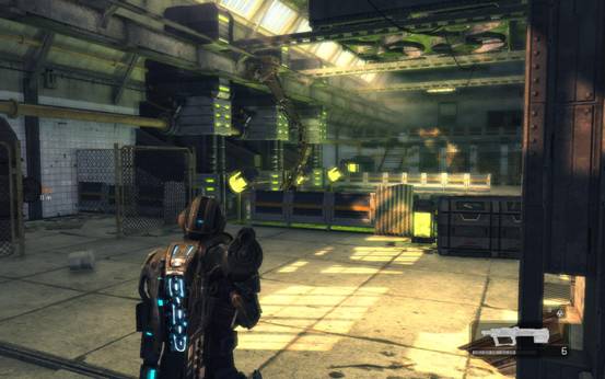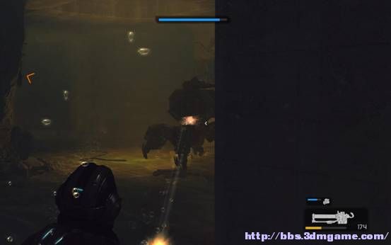 清理对面的几个晋级冲锋兵后拧开开关,接下来出跟踪小球的机器出现了,用火箭通在他没有防护罩的时候开火,两炮解决,接下来还会碰到同开始一样,火箭筒轰炸。开门换场景。