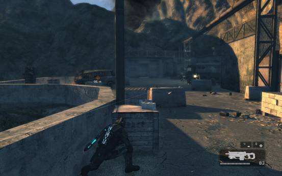 激光枪先干掉阻击手,激光枪子弹用光的时候对面也就剩一个红外了。右边的屋子是弹药补充的地方,到目标出还会有红外和晋级冲锋,干掉之后换下一场景打第四章关底