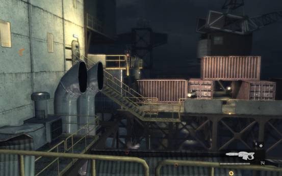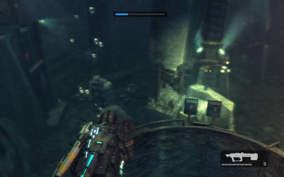 不要想着省子弹,迅速干掉后,放下梯子上岸,上岸后清兵,上电梯。到下一场景。