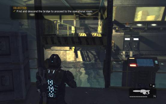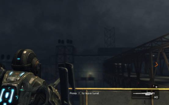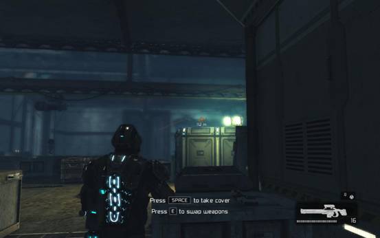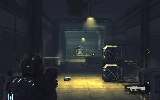 在清理几个爬行机器人,传过桥后来左边的机器处,这里会有飞行机器人。。打完后去开门,到下一场景。