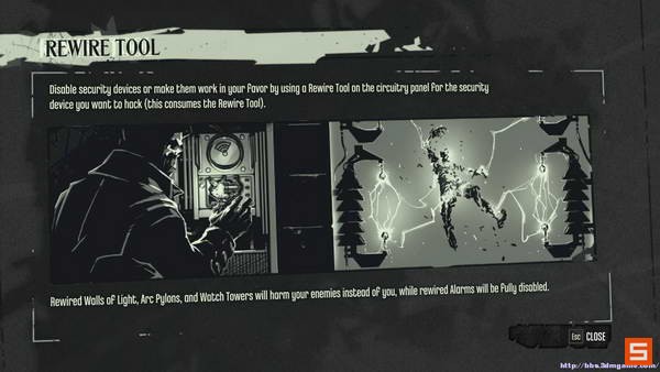 REWIRE TOOL这个工具相当有用。该工具作用与报警器和电网的控制器,可以让其失效或者改为针对只攻击敌人的反向效果。而且该工具在游戏中的分布较多,故可以在补给的时候不用过多购买。
