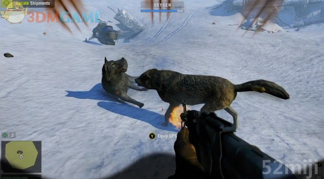 来到直升机的坠落地,先清理掉3只狐狸,或者扔肉块引开它们。