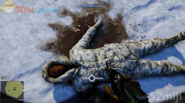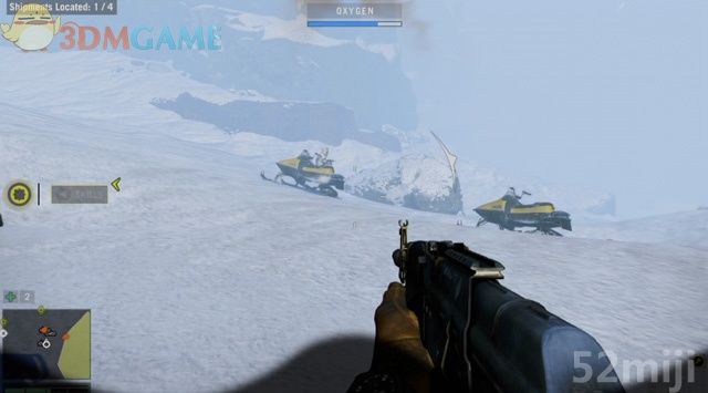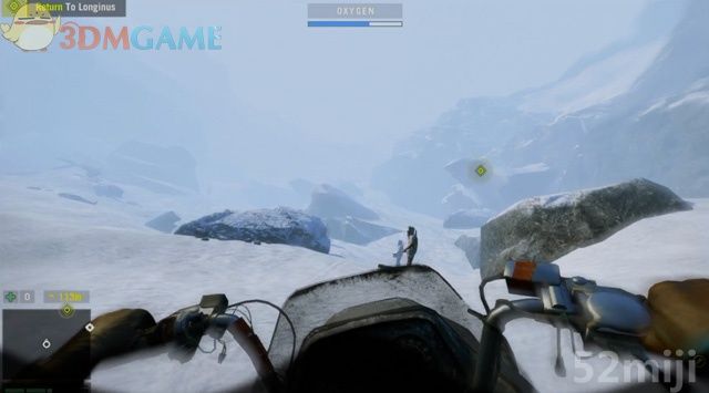 这里海拔很高,需要氧气面罩才能生存,所以当务之急是抢一只。前方出现一名敌兵的身影,等他转身冲过去解决掉,抢到一只氧气面罩。