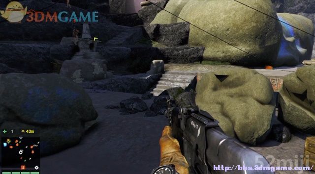 跑到神像的右侧,攀爬几层平台抵达神像的盘膝位置,走到佛像的左侧,也就是正殿的右侧。这里有一个安全的壁室,左右两侧和上方都被石壁保护起来,不受狙击手的威胁,只须应付正前方的敌人。