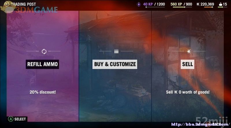 在购买菜单有三个窗口,最左窗口是补满现今武器的所有弹药。中间窗口是购买治疗针剂、护甲、手雷炸弹等消耗品,还有佣兵升级。最右窗口是出售搜刮的物品。