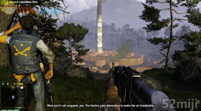 往前山中小屋和游击队员会面,收集屋里的补给。到山顶和游击小队长见面(和瑟巴路线不同,这回是个女的),小队长正举着望远镜朝山脚的工厂瞭望,说:“这间工厂用发动机来运作空气净化系统,毁坏它们,迫使内部的士兵跑出来,你要把工厂内部的伤害降到最低。更重要的一点,负责这间工厂运作的首席化学家,阿米塔想要他死掉。”