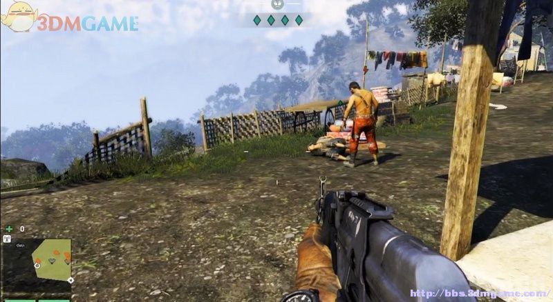 2:石块和雷达。扔石块可以转移敌人的注意力,并使他离开当前的位置,方便潜行。经常的观察雷达小地图,能够清楚敌人的位置和朝向,这样便于从敌人的监视中找到间隙。