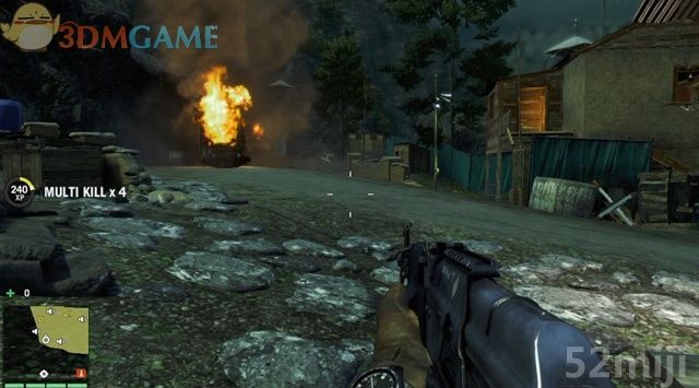第二种方法,在调查完电台后迅速下楼到楼前面,使用那座迫击炮来轰炸来敌。迫击炮的炮火是范围攻击,并且破坏力强劲,在敌人尚未分散之前就全部轰杀。