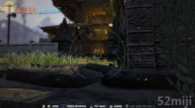 登陆到小岛,先用相机标记下神庙正殿的敌人,现在可以看到4名,三层2名,一层2名。