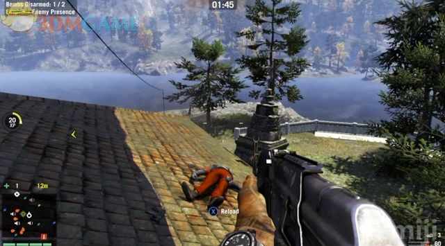 回到地面,沿楼梯到三楼,这里有三名敌兵,可以连续暗杀。不过笔者这里触发了战斗,会有4分钟的时限,到时间炸弹就会引爆。不过没关系,这里已经离炸弹很近了,耐心的清理周围的敌兵。