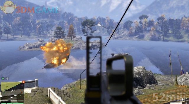这里要操纵平台上的机枪,先射杀机枪艇上的士兵,先右后左。每只艇上有两名士兵,一名操持机枪的,一名候补。