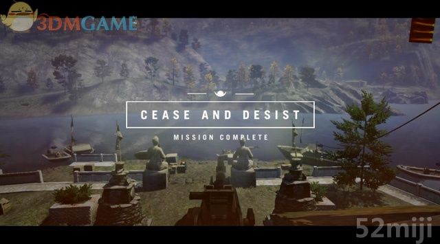 摧毁两架直升机后,回到神庙的三层,用机枪射杀正面的两只机枪艇的枪手,任务完成!