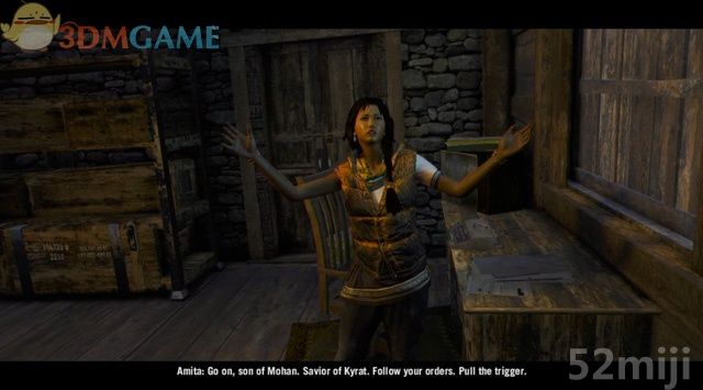 瑟巴离去后,驾驶旁边的麾托车赶往阿米塔的驻地。途中会收到裴根民的通讯:“嘿,听闻你的两位小朋友争吵的厉害,你夹在中间一定很难做吧,选择是一件很困难的事情。相信我,我在这儿呢。事实上呢,你应该感谢我作出的选择,比如像……尤玛的选择。我在电视秀节目里将她送给了你,而你跑去杀掉了她。可怜的尤玛,我会非常想念她的。那个电视节目是个非常艰难的决定,但它却是正确的,你会明白。当然,我知道你正忙呢,快去把他们吓出眼泪来吧!但是别忘了,阿基,所有的选择必须有一个结果。”