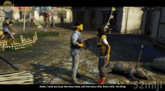 阿米塔正在村庄小广场吩咐手下:“我要你到每家每户找到每个孩子,然后把他们带给我,快去!”说话时,很多的游击队员将村民押解到广场。