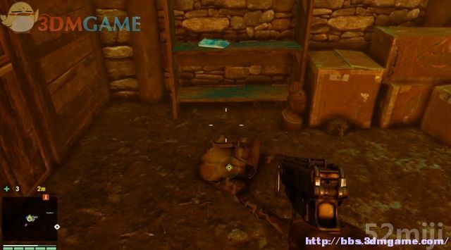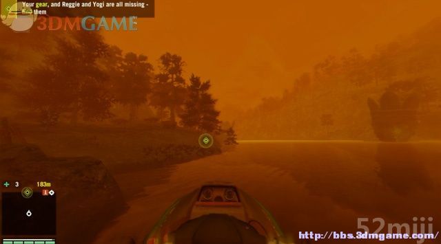 到河流的末端登岸,进到木屋拾取地上的背包,任务完成。