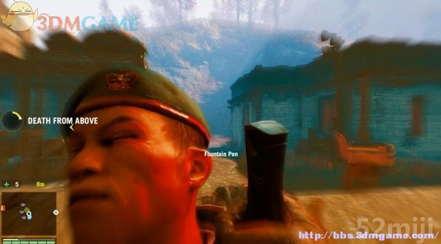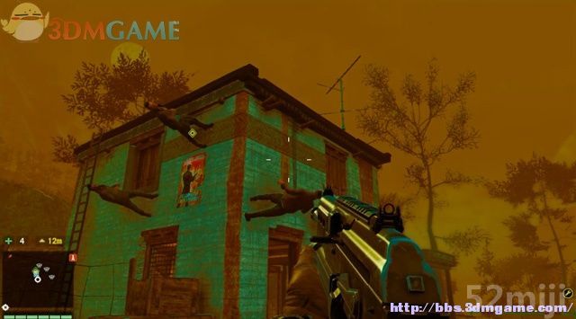 跑过去拿装备,却发现是陷阱,被铁丝网围住。这里只能用刀拚了,踢开木栅射杀前面的敌兵。