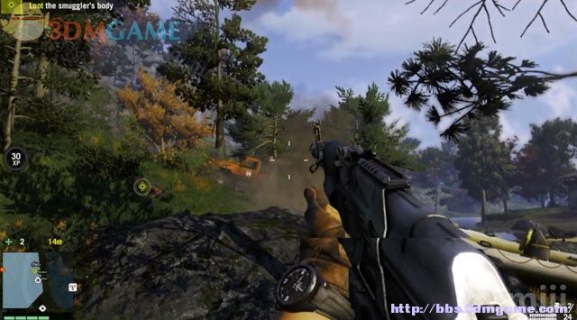 等走私者登岸,迅速射杀他。另一名敌兵会控制车载机枪,扔手雷轰杀。搜索走私者的尸体,拿到一把钥匙,接着要进入地堡。