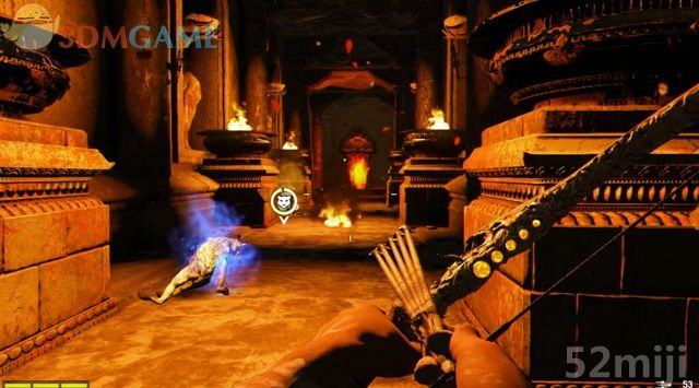 经由传送门来到一座大厅,这里会遭遇猎狗、弓箭手和掷弹兵,远远的射杀,不要急于进攻,以免被夹击。