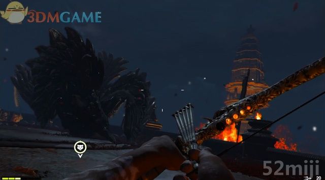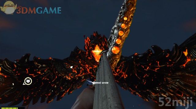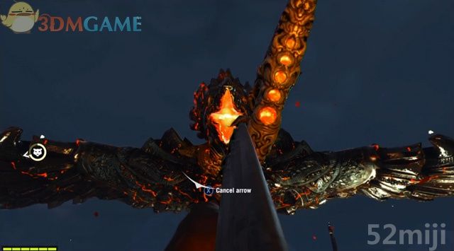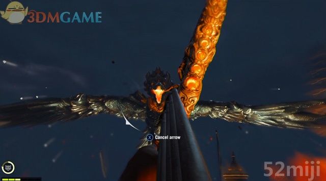 当它悬停在空中时,迅速朝它的位置移动。在它要张嘴发射火球时,在瞄准状态下进入子弹时间,瞄准它露出的橙色口腔射箭。射中的话,它会哀鸣一声中止吐火,展翅飞到另一边再次尝试攻击。