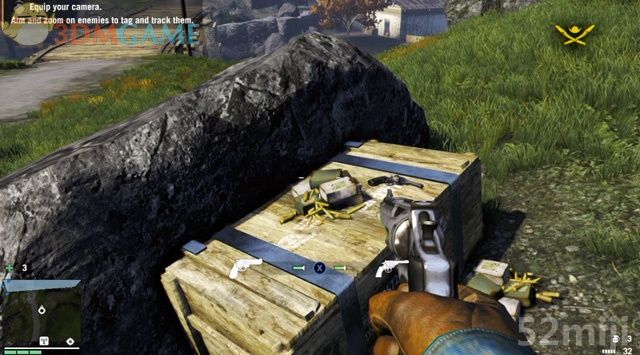 前往任务地点,用相机标记下敌人。敌人数量不会太多,一般是三四名,不过那名要杀的军官并不一定能看到,躲在隐秘处或屋子里。