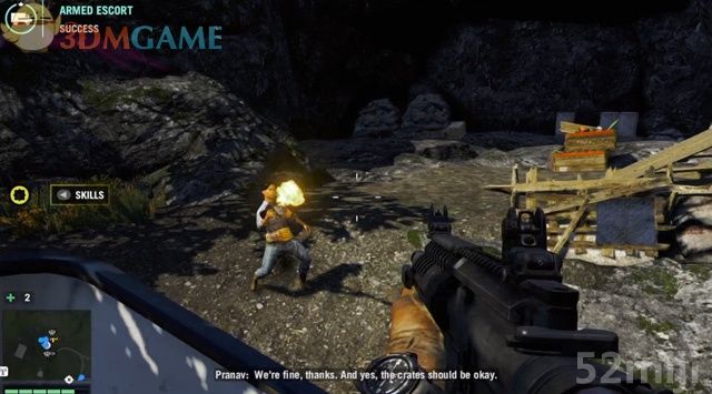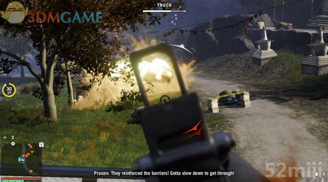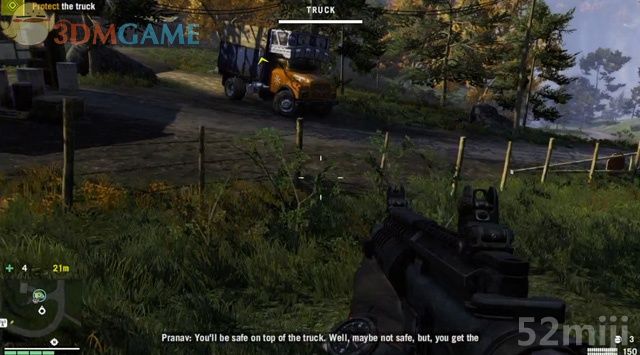 赶到指定地点找到需要护送卡车,附近会有补给点,这里可以换上榴弹枪。拿完弹药跳上后车厢,卡车会徐徐朝目标地行进。