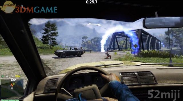 驾车朝终点驶去,途中若遇到敌人,直接冲过去就可以了。