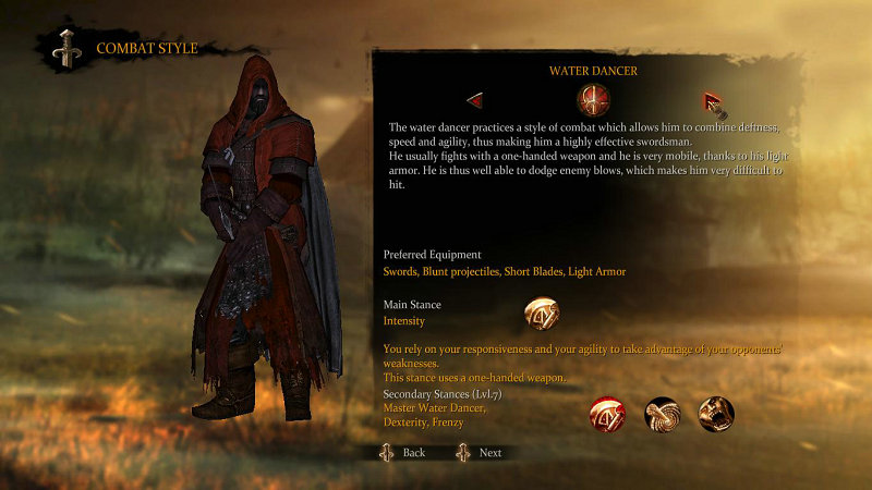 Alester有三个职业,WATER DANCE轻装刺客),SELLSWORD(重装刺客),ARCHER(弓手)。三个职业对于ALESTER来说的话 其实选择的余地并不是很大