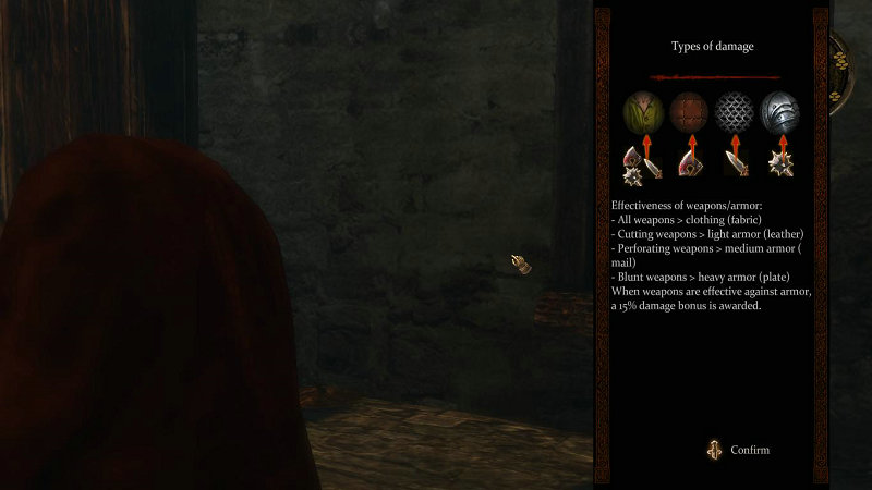 对于轻装甲敌人,切割类武器(斧头等等)适合进行攻击;对于中装甲敌人,穿刺类武器适合攻击(剑,矛,弓箭等);而对于重型装甲,则钝性武器适合攻击