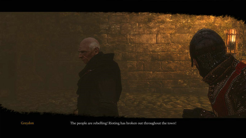 然后回到城堡门口,同暴动的总核心人物对话,选择是否要杀掉他。这个家伙不是很难打,偶尔会释放流血技能,注意躲避就可以了
