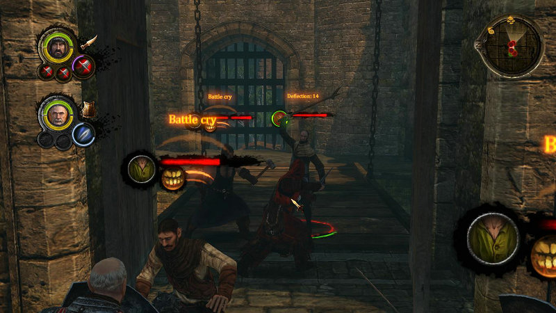 首先来到城堡正对门的闸门与这里的暴民对话。你可以通过对话选择是合理劝服还是直接砍了他们。这里就是看你自己的选择