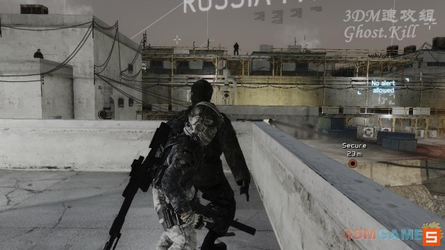 进入基地大院,想到左边干掉这个敌人,然后标记处决图中房顶的两个狙击手。接下来解决二层
