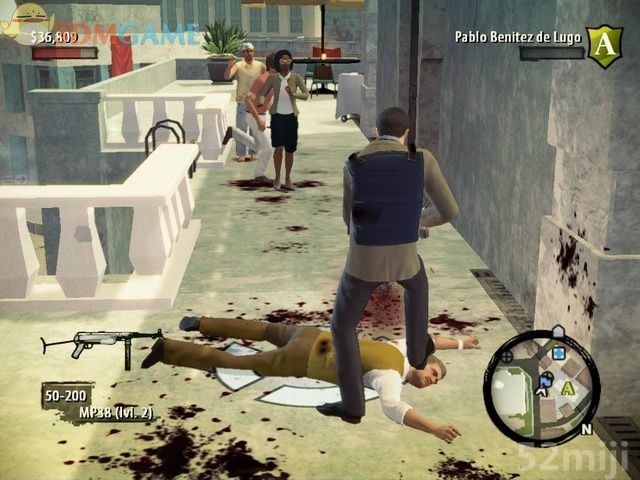 ⑤角头Raul Limonta(古巴):用近身武器打碎他的头颅。在居民楼围成的院落里,他身边有众多枪手,建议先由楼梯到平台,居高临下清除,然后用手枪将他打残,上前换球棒处决。