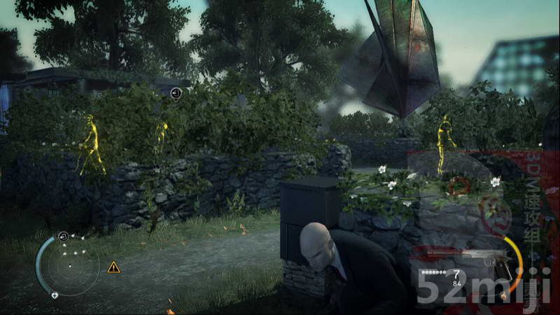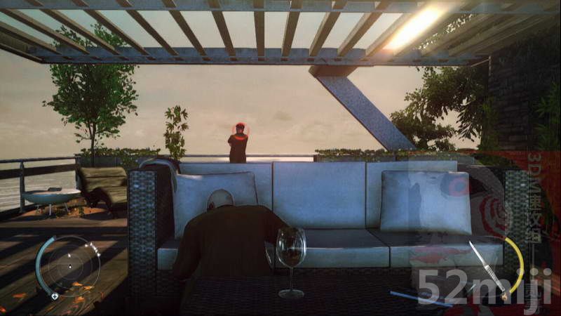 7.进入花园,消灭敌人,开门进入房间。用刀投掷消灭阳台敌人X2。