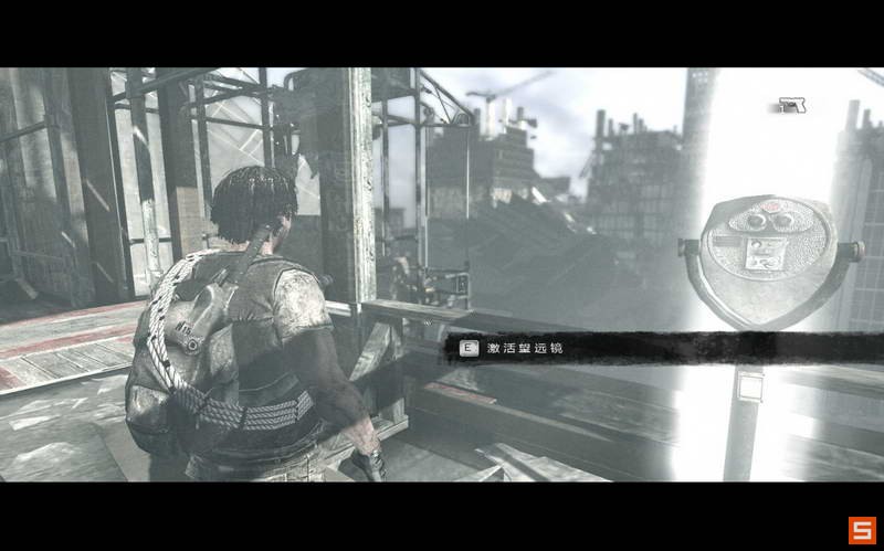 来到6楼望远镜旁,按E看见最高点,用升降机到地面上,一直走