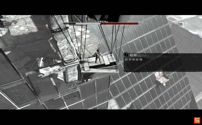 来到商场后,前往4楼避难,在途中主角要背着小女孩爬墙到了4楼后,