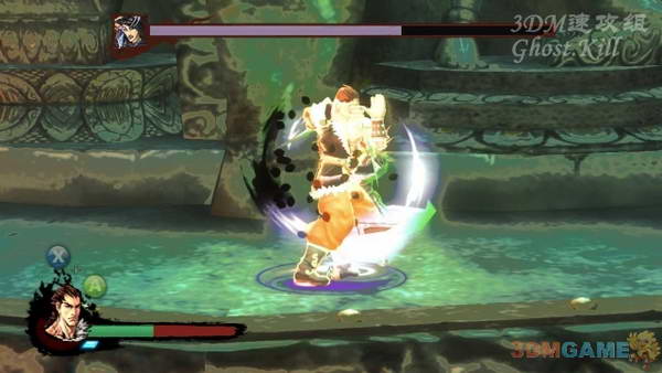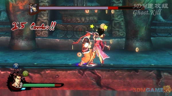 打掉她差不多一半的血的时候她会分身,实在太坑爹了,打发和之前一样,就是BOSS一个变俩了,更难防了,尤其是她放必杀的时候,两个人以微弱的时间差攻过来,基本必定中招,所以这种时候就放必杀以牙还牙才行,多死几次就能适应过来防御时机了,干掉后进入第四个卷轴的关卡。