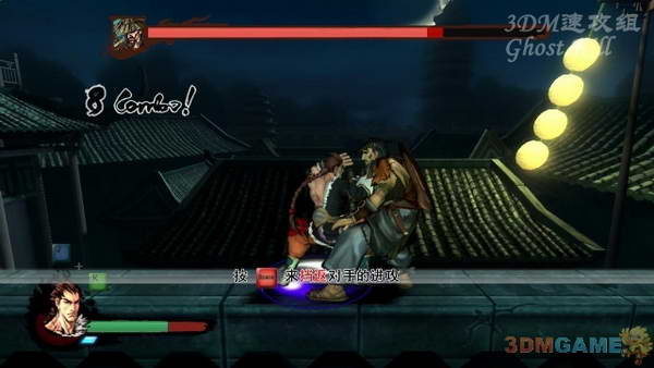BOSS被揍急了后身上会发红光,这种状态的攻击不要防御,按K飞踢,这样跳着可以躲开。