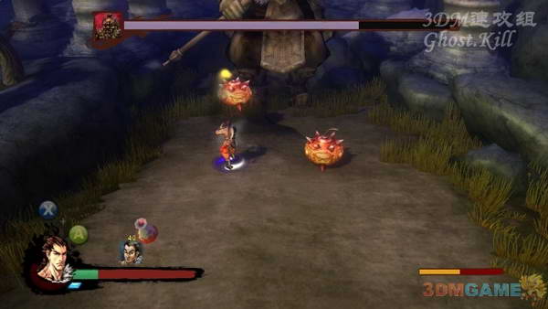 杂兵杀光后面前的巨大石像化身为BOSS,普通攻击有效,必杀可以让他僵直,也可以把天上时不时掉下来的炸弹打过去炸他。BOSS的攻击方式有三种,一种是类似牛头人酋长的战争践踏,跳着就能躲开,第二种是离他近的时候他会伸手抓一把,第三种是转动手里的武器制造一阵龙卷风,会把炸弹什么的卷进来,一旦被击中就是双重伤害,费血超多的。杂兵也会来碍事,建议召唤几个小弟吸引下火力,然后集中攻击BOSS。