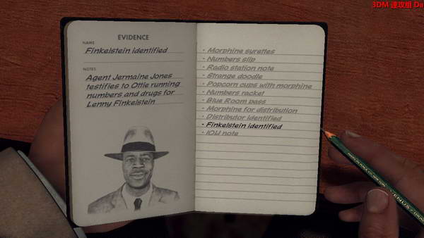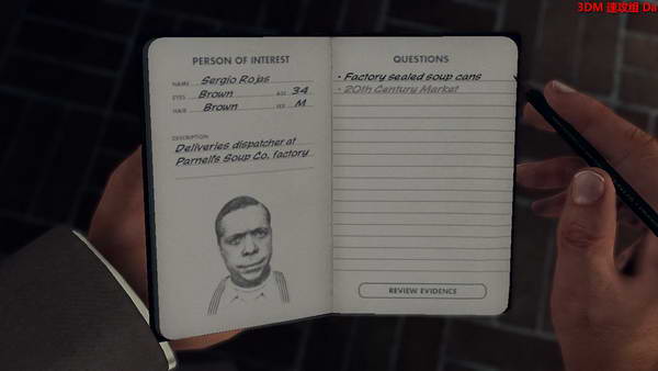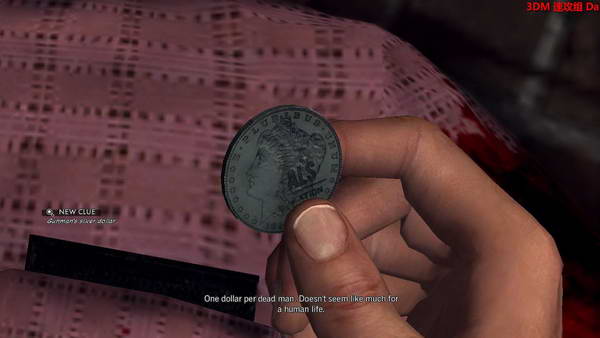 然后去调查一下趴着死的家伙,右边口袋可以找到他的身份证,之后调查旁边的红色桌子,有张白纸,旁边地板上还有个线索!