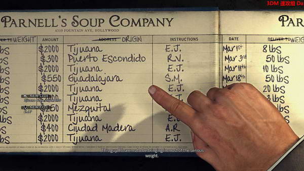 跟着罐头厂老板去到厂房。询问前可以先看看账本:指着20th century market
