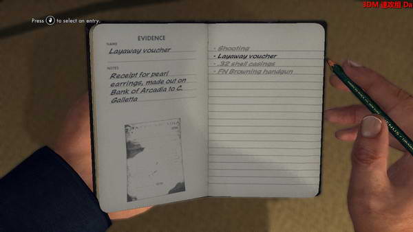 这里顺序是数字键3-2-1 其中数字键3是说谎,需要线索来指证(如上图,选择收据)