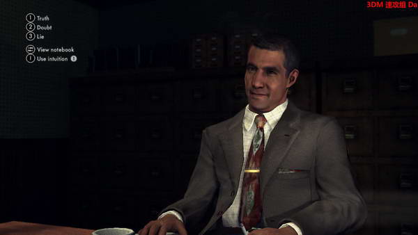 进入游戏的审问设定!开始用警察记事本从对应人物的右边选择问题。发问。在根据回答者的反应判断事实