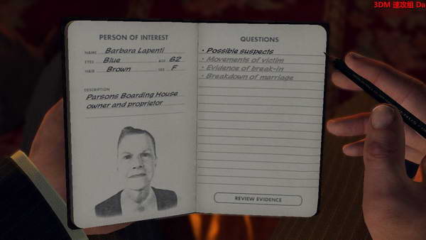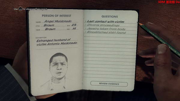 在上到2号审问室,审问死者前夫。以上图的顺序:3-3-1-2 第一个问题(Husband's alibi)第二个问题(divorce papers)